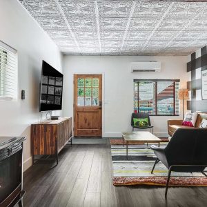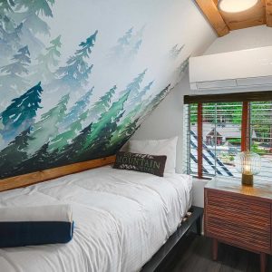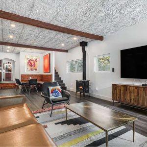 The Original Historic Idyllwild Town Crier has seen many transformations through the years and it has just been renovated into a stylish cottage with modern touches. It is perfect for an intimate escape for just 2 or if you want to share the fun bring family or friends to join. With over 1200 sq. ft, there is plenty of room for everyone! This is a completely remodeled 2-story home, featuring a stylish living room with a gas burning stove pipe stove, a dining room with custom-made banquet seating, a chic kitchen, 2 full baths, and a charming front patio with tremendous views of Lily Rock. The Master bedroom has a King bed, built in electric fire place, plus an ensuite bathroom that has a spacious shower and a luxurious clawfoot bathtub. There is an upstairs a-frame loft with 4-twin beds.
