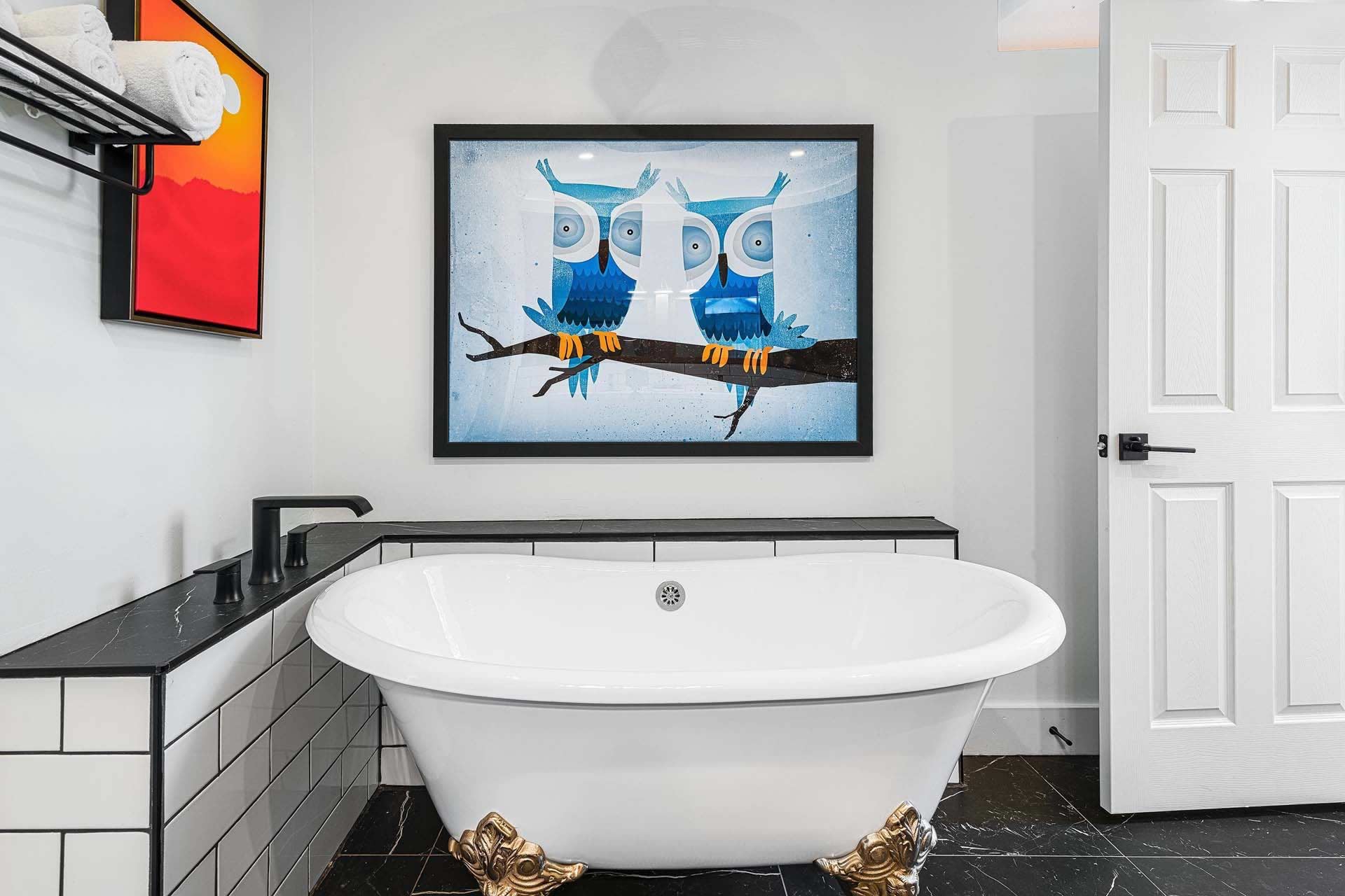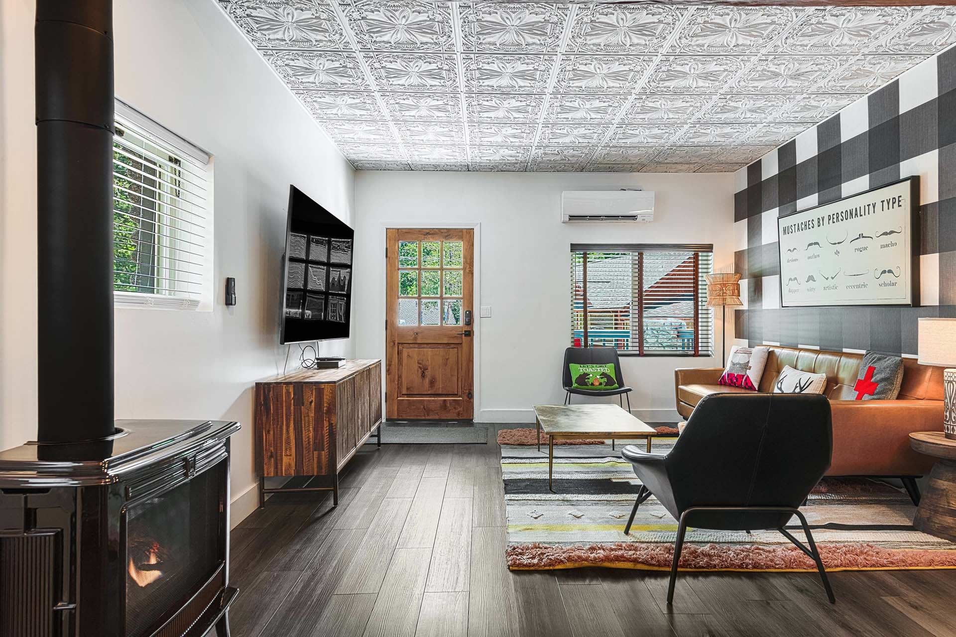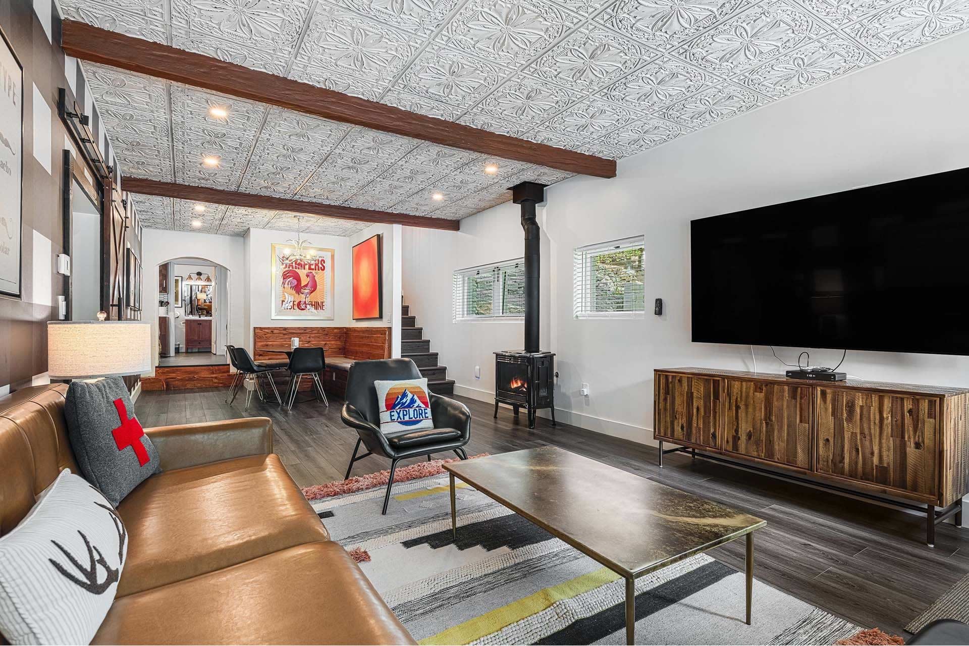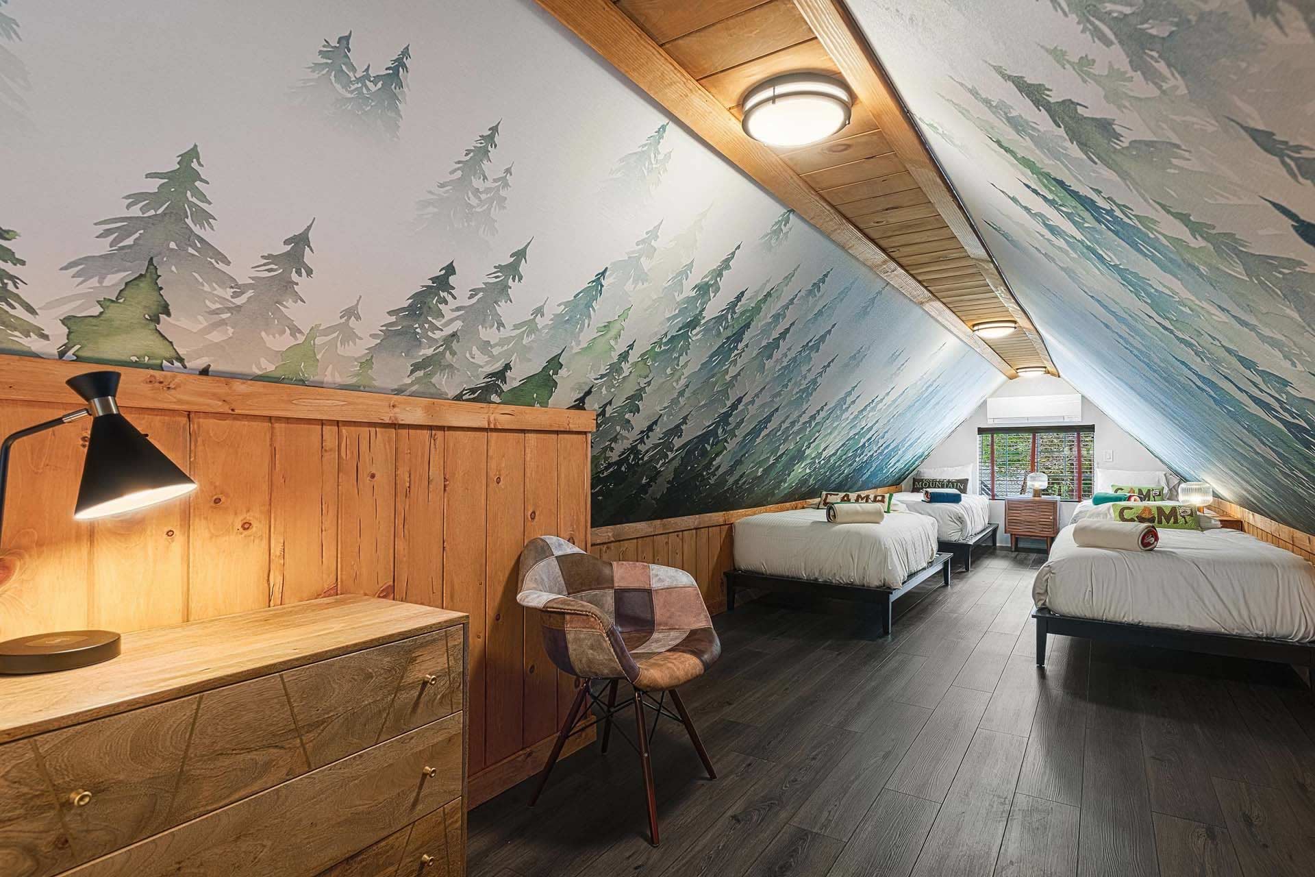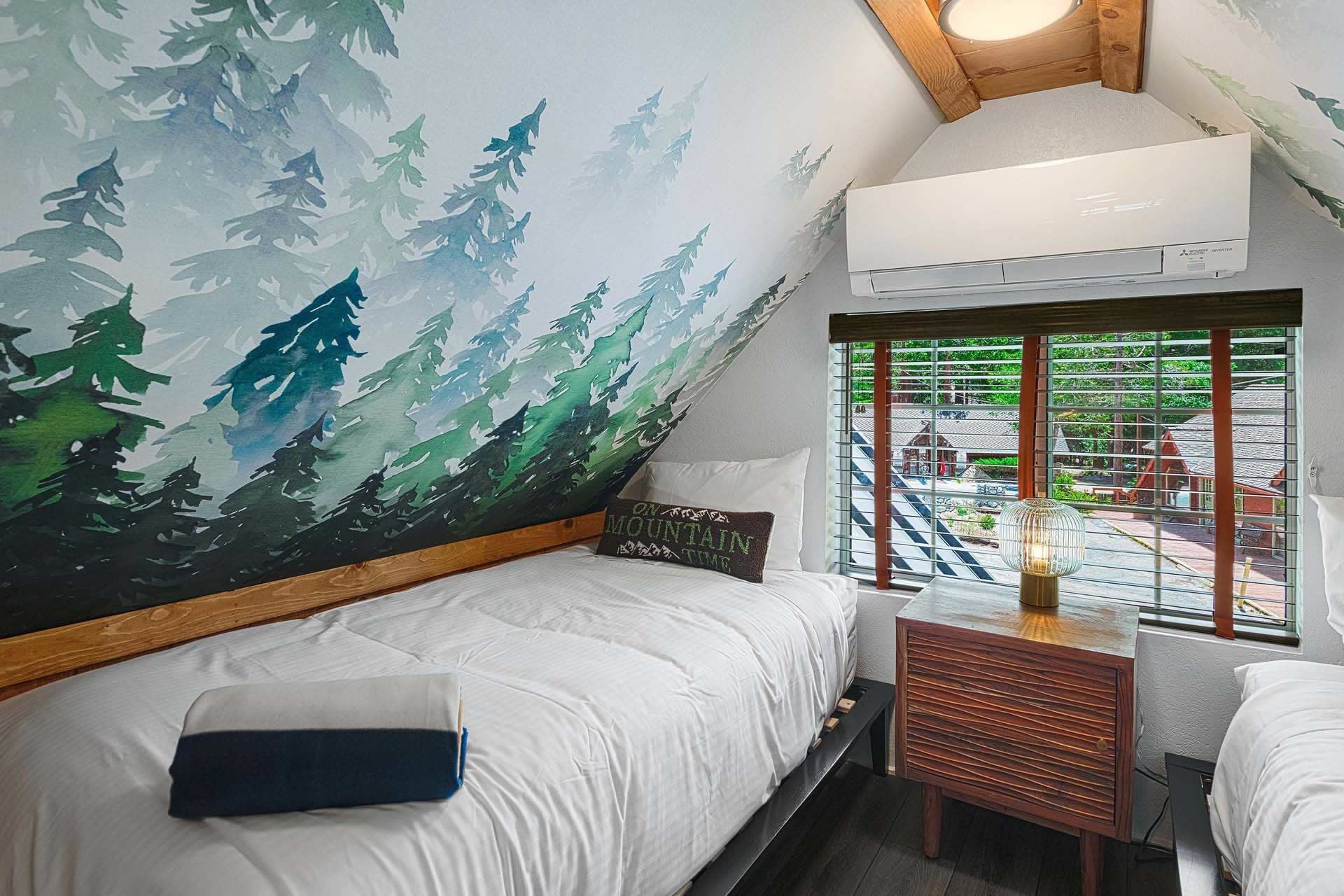 The Original Historic Idyllwild Town Crier has seen many transformations through the years and it has just been renovated into a stylish cottage with modern touches. It is perfect for an intimate escape for just 2 or if you want to share the fun bring family or friends to join. With over 1200 sq. ft, there is plenty of room for everyone! This is a completely remodeled 2-story home, featuring a stylish living room with a gas burning stove pipe stove, a dining room with custom-made banquet seating, a chic kitchen, 2 full baths, and a charming front patio with tremendous views of Lily Rock. The Master bedroom has a King bed, built in electric fire place, plus an ensuite bathroom that has a spacious shower and a luxurious clawfoot bathtub. There is an upstairs a-frame loft with 4-twin beds.